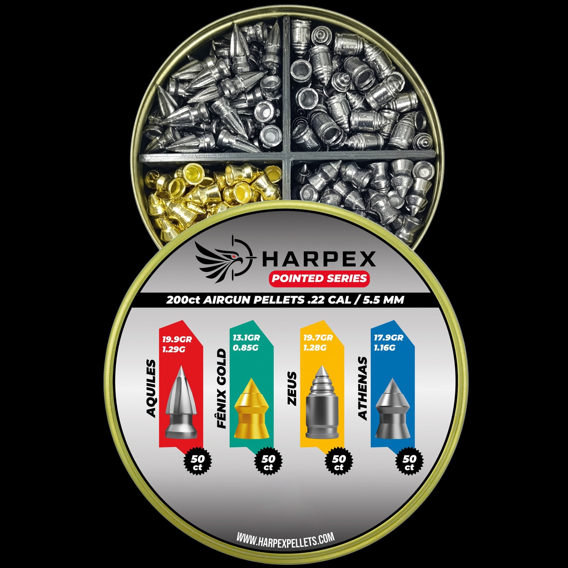 Introducing the Harpex Pointed Series 4-in-1 Combo: four premium Harpex pellets—Aquiles, Athenas, Fênix Gold and Zeus—all packed into a single jar and engineered with razor-sharp tips and streamlined profiles for deep penetration and pinpoint accuracy in every shot. Perfect for serious marksmen who demand consistent, tight-group performance and unbeatable power.